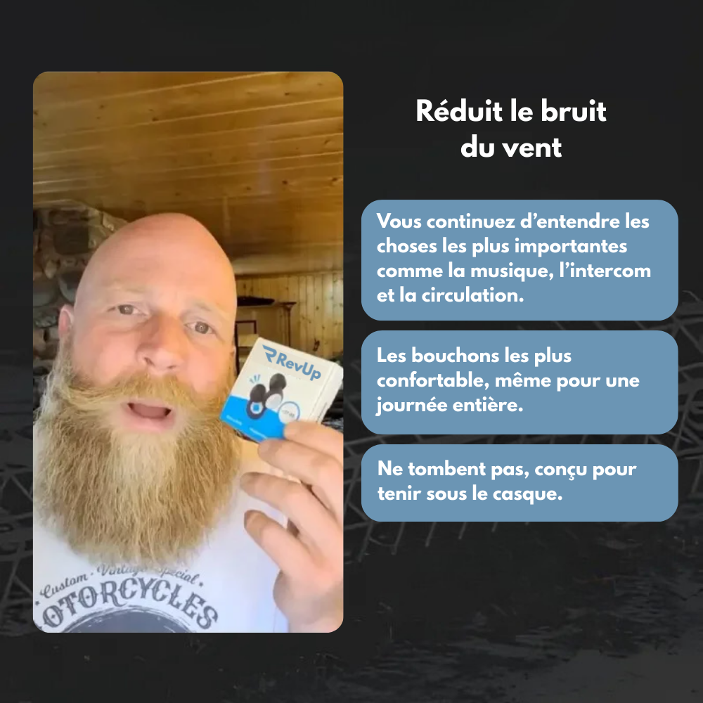 J’ai récemment acheté deux paires (une offerte pour une achetée) pour remplacer mon ancienne marque. Mon ancienne paire nécessitait un applicateur pour les insérer, un peu fastidieux !Cela fait maintenant quatre semaines que j’utilise mes nouveaux bouchons RevUp (je fais plus de 1000 km par mois). Ils fonctionnent très bien : je peux écouter mon casque audio, entendre la circulation, et comparé aux autres marques, c’est un excellent rapport qualité-prix. Je suis vraiment satisfait et je les recommande ! Ils réduisent le bruit du vent et du moteur, sont faciles à mettre et confortables sous un casque intégral. J’ai récemment acheté deux paires (une offerte pour une achetée) pour remplacer mon ancienne marque. Mon ancienne paire nécessitait un applicateur pour les insérer, un peu fastidieux !Cela fait maintenant quatre semaines que j’utilise mes nouveaux bouchons RevUp (je fais... J’ai récemment acheté deux paires (une offerte pour une achetée) pour remplacer mon ancienne marque. Mon ancienne paire nécessitait un applicateur pour les insérer, un peu fastidieux !Cela fait maintenant quatre semaines que j’utilise mes nouveaux bouchons RevUp (je fais plus de 1000 km par mois). Ils fonctionnent très bien : je peux écouter mon casque audio, entendre la circulation, et comparé aux autres marques, c’est un excellent rapport qualité-prix. Je suis vraiment satisfait et je les recommande ! Ils réduisent le bruit du vent et du moteur, sont faciles à mettre et confortables sous un casque intégral.